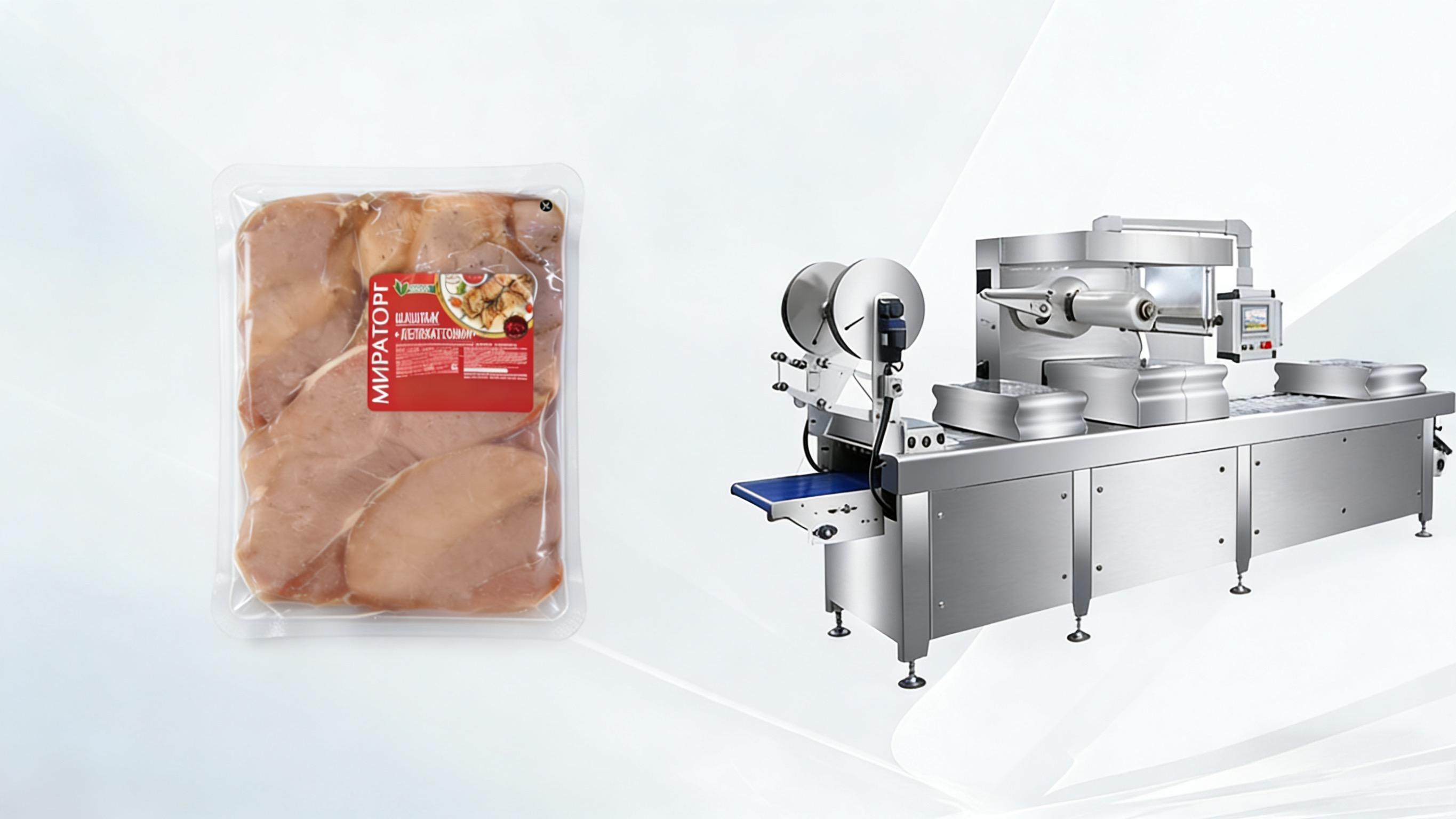 Traditional meat thermoforming packaging machines are equipped with only one standard mold, packaging only one product at a time. When the production line needs to process multiple specifications and small-sized materials simultaneously, production efficiency is low and film waste is significant. It cannot flexibly respond to the market's demand for multi-batch, small-volume production. We provide customized multi-mold solutions, supporting "one-out-one" or even "one-out-multiple" mold configurations, enabling parallel packaging of small-sized products, improving efficiency by up to 90%. Equipped with a quick mold change system, tool-free mold replacement can be completed within 10 minutes, compatible with multiple mold shapes. One machine can meet the production needs of multiple varieties, significantly improving equipment utilization and production line flexibility.